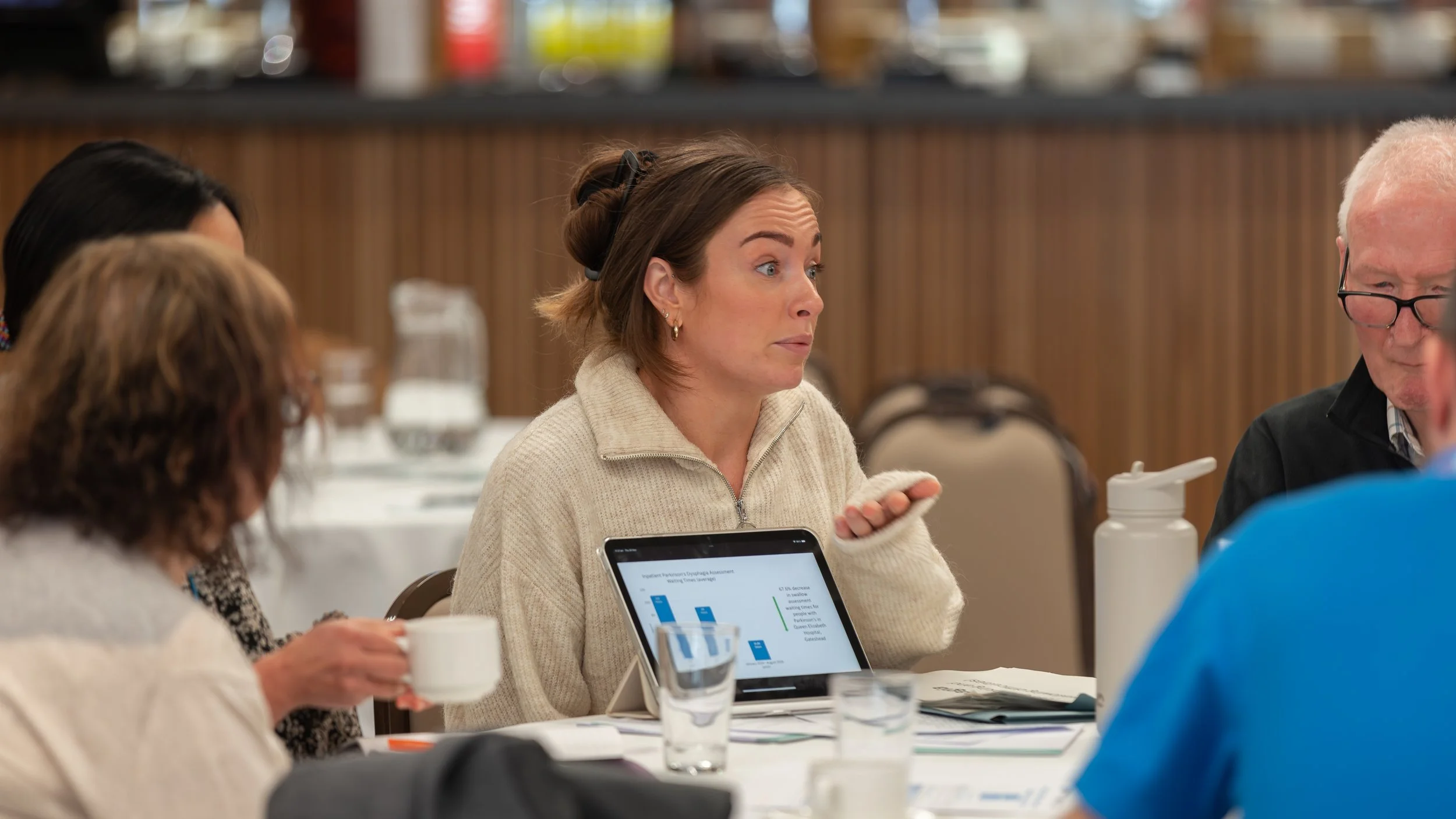 Louise discussed a two-year pilot study in Gateshead focused on improving the speed and quality of care for people with Parkinson’s who experience swallowing difficulties. The pilot study in Gateshead has provided rapid assessment of patients, both for in-patients and patients at home who have swallowing difficulties to have a food and medications plan. The Parkinsons patients within the QE Hospital now have a SALT assessment at around 31 hours after admission, rather than around the 100 hours previously experienced, which reduces the likely overall stay in hospital. Home patients are also seen within a shorter time to help their ongoing health. Although the pilot is coming to an end, early feedback from patients has been extremely positive, showing how timely, specialist support can make a real difference to safety, wellbeing and quality of life.
